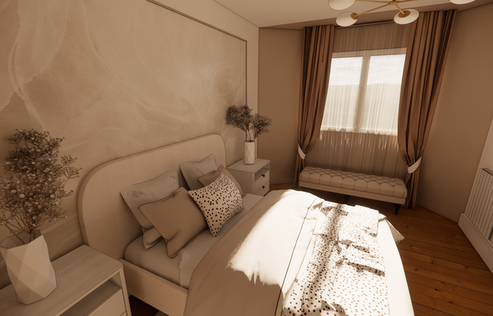 Ce projet visait à créer un espace de vie harmonieux et chaleureux pour mon client. Le défi : optimiser le séjour pour une meilleure fonctionnalité et transformer la chambre en un véritable cocon de douceur.